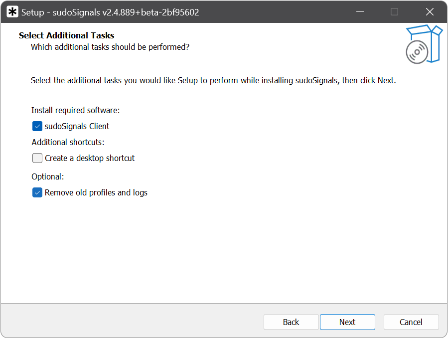 There are some additional settings you can adjust when installing sudoSignals.